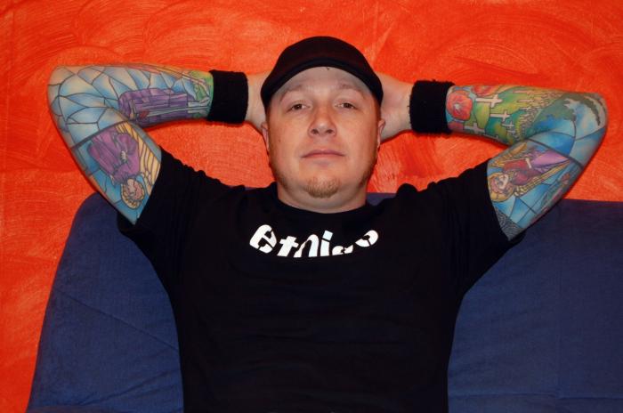 – Tak. Moim tatuatorem jest Casey Davies pracujący w kanadzie. To artysta, którego cenię sobie najbardziej. Trafiłem na niego przypadkiem. Mój pierwszy tatuaż zrobił gość o imieniu Ken. Potem wyjechał, ale wcześniej przestawił mi kumpla. To był właśnie Casey. Zaprzyjaźniliśmy się i od tamtej pory to on właśnie mnie tatuuje.