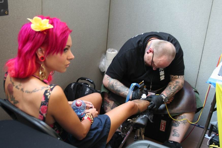 W ostatni weekend września (25-27) odbyła się w Londynie kolejna odsłona największej europejskiej konwencji tatuażu. Do stolicy Anglii zjechali artyści z całego świata. Odwiedzających było tak wielu, że trzeba było odstać swoje, by dostać się do środka. Prezentacja wytatuowanych piękności, odpowiadający na pytania jeden z najbardziej znanych projektantów maszynek do tatuażu Micky Sharpz, burleski w wykonaniu zgrabnych dziewcząt, prezentacja zasobów Brytyjskiego Muzeum Tatuażu, którego twórcą jest Lionel Tichner, wystawa tybetańskiej sztuki czy kolekcja graffiti to tylko niektóre z atrakcji londyńskiego show. Prezentujemy galerię zdjęć sytuacyjnych w wykonaniu Anabiego z Anabi-Tattoo.