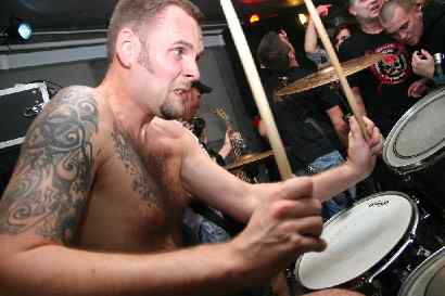 Szymon: Nie mam ich zbyt wiele, bo finanse mnie troszkę ograniczają, ale z czasem na pewno wzory będą przybywać na mojej skórze. Traktuje tatuaże jako symbol i ozdobę jednocześnie. Powstają przecież w jakimś okresie mojego życia, więc zawsze będą mi przypominały o tych dobrych czasach. Nie pozwalają zapomnieć też o moich znajomych. Troszkę sentymentalnie to brzmi, ale każdy przecież robi sobie tatuaż z różnych, własnych powodów. Nie mają one nic wspólnego z modą i nie wynikają z żadnych nacisków bądź wymuszeń. Wiem, że nigdy nie zrobię sobie kolorowego tatuażu. Jakoś nie pasuje to do mojej osobowości, co nie oznacza oczywiście, że wytatuuję się cały na tzw blachę. Nigdy też nie zrobię sobie tatuażu z gazety. Wzory zawsze będą powstawać indywidualnie i projektowane będą przez moich znajomych. Tatuowało mnie dopiero czterech ludzi, ale jedno wiem już na pewno: Dawid, nasz były gitarzysta, ma pełne przyzwolenie na nanoszenie na mnie swoich wzorków, hehehe.