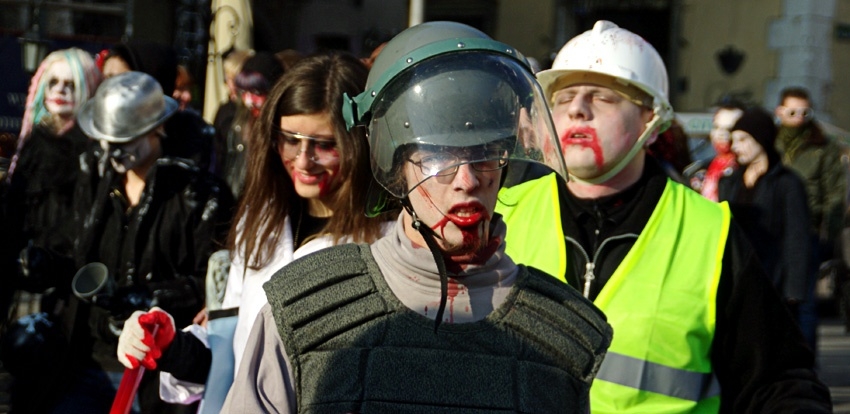 31 października ulicami Krakowa przemaszerował marsz „żywych trupów”. Postacie rodem z horroru w zakrwawionych ubraniach kroczyły wolno przez miasto jęcząc i zgrzytając zębami. Celem pochodu była halloweenowa impreza Necro Party w mrocznym klimacie i rytmach psychobilly. Zapraszamy go galerii zdjęć z imprezy.