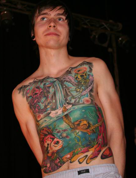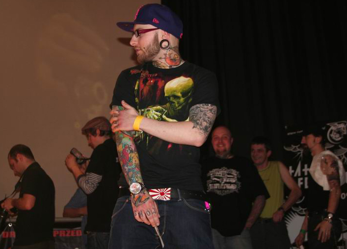 Kudż: Nie do końca. Ale ze strony Szamana spodziewałem się raczej nacisku na duchową stronę szybowania na hakach, na inicjacyjny charakter tego uwspółcześnionego rytuał. Obawiam się, że ukazanie suspension w takim świetle, jak zostało ukazane, nie będzie niczym więcej jak potwierdzeniem dla laików, że ludzie zajmujący się tym to zwyrodnialcy i pojeby. Bo takie właśnie emocje biły z twarzy wielu widzów. Z innych scenicznych wydarzeń nie można nie wspomnieć o części konkursowej festiwalu. Jak zwykle przy tej okazji trudno było dostać się pod scenę, a i tak skąpiono nieoficjalnym fotografom robienia zdjęć. Zdecydowanie więcej i dokładniej można było zobaczyć i dowiedzie się, przechadzając się pomiędzy boksami. Stamtąd też wyniosłem największe nasycenie swojej potrzeby piękna. Niewątpliwie tatuaż w Polsce stoi na coraz wyższym poziomie. Aż dusza się śmieje.
